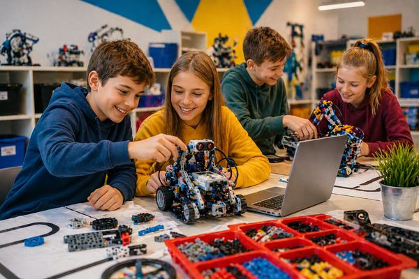 Przez 3 godziny pracujemy metodą projektu – od pomysłu, przez budowę i programowanie, aż po testy i prezentację.